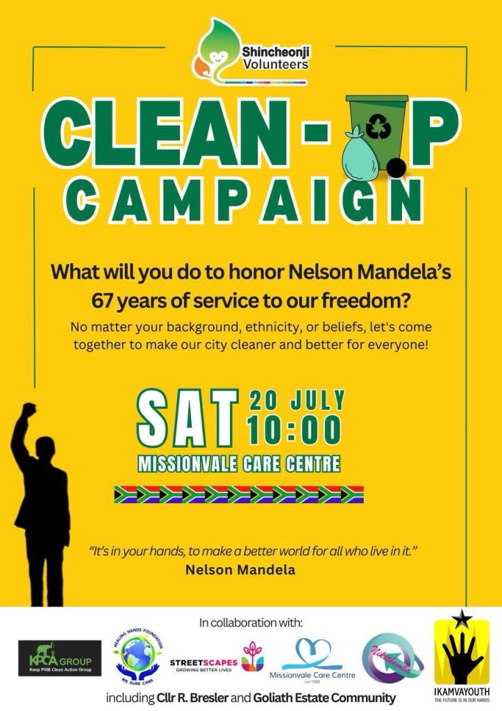 The Missionvale Clean-Up Campaign, hosted by Shincheonji Volunteers, is calling on all change-makers to join forces and make a difference! On Saturday, July 20, the organization is bringing together individuals from all walks of life to create a cleaner, healthier, and more beautiful community for the residents of Missionvale township.